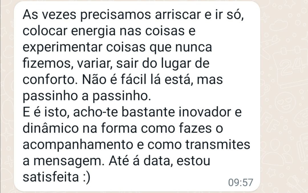 Acede a um grupo exclusivo de whatsapp e telegram com outras mulheres na mesma jornada que tu. Podes tirar todas as tuas dúvidas, partilhar o teu progresso, e falar com pessoas que já estão onde tu queres estar!